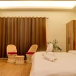 Our Deluxe Rooms are thoughtfully designed for maximum comfort and relaxation, featuring a spacious layout with large windows that provide soothing views and ample natural light. Each room includes a comfortable king-size bed, elegant wooden interiors, and cozy seating arrangements to ensure a relaxing stay.
